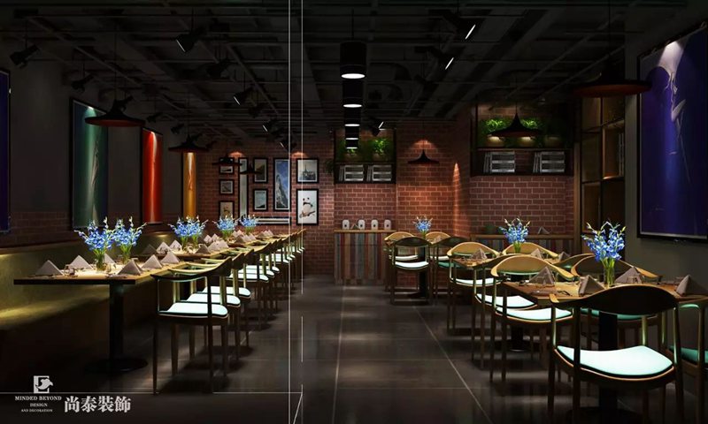 蔣亮亮:首先,不同的餐廳它自身的市場定位不同,也就是說它面對的顧客群體會有區(qū)別,在此基礎(chǔ)之上,我們再來考慮怎么樣通過設(shè)計來使這個餐廳“差異化”,讓它在眾多餐廳中脫穎而出,譬如材料的運(yùn)用,種類多樣的材料的不同組合方式可以構(gòu)筑不同的就餐場景;燈光的運(yùn)用,不同燈具的使用可用來烘托不同的氣氛,帶給人不同的視覺感受;空間劃分方面,不一樣的格局會影響人的就餐心理感受,這里還涉及到餐廳內(nèi)動線的設(shè)計;還有元素的選取,我們一般會選擇那些緊扣空間主題的元素;此外,軟裝的搭配也非常重要,軟裝不僅僅起到裝飾點(diǎn)綴作用,還能間接升華餐廳的主題...