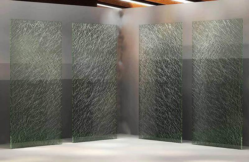 一般裂紋玻璃有兩種:一種是直接在玻璃表面進(jìn)行處理,真樣的玻璃就一層,能感覺到花紋的凹凸感;還有一種就是夾層玻璃,中間一層加工裂紋,兩邊是普通的玻璃,因?yàn)橛?層所以比較厚,但是感覺不到任何凹凸與裂紋。