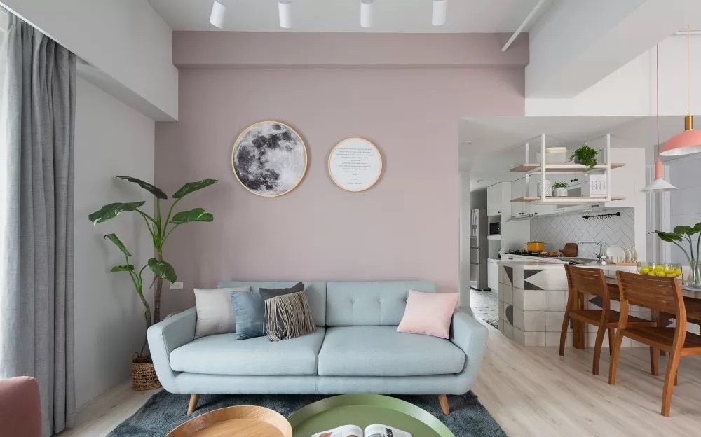 以下兩個設(shè)計都使用了較柔和的草綠色沙發(fā)作為客廳主角,可以突顯空間明亮通風的感覺。而為了創(chuàng)造整體色調(diào)的和諧性,禾筑設(shè)計選擇在一面白墻上搭配一幅有著亮綠色圖形的畫作;麓人設(shè)計則是在沙發(fā)背墻上懸吊自然風掛畫,并選用黃綠色抱枕點綴,能夠讓居家看起來既平靜又充滿活力。